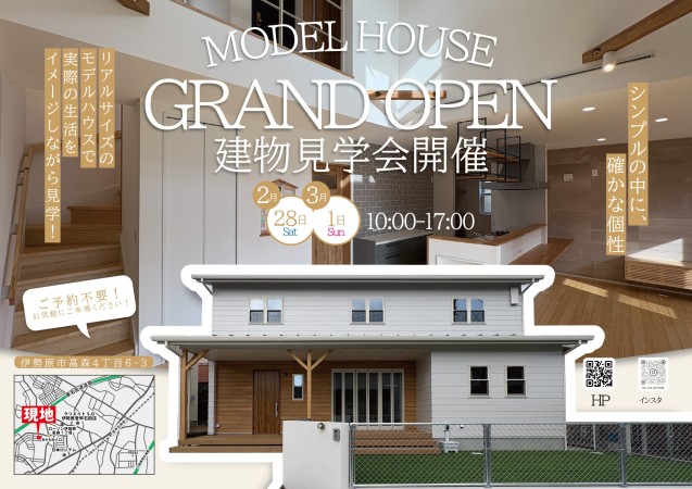伊勢原市板戸モデルハウス2棟の内覧会を3月2(土)-3(日)の10:00~17:00にて開催いたします! モデルハウスは2棟とも、家具を設置しております。 LDKだけでなく、トイレや洗面脱衣所、浴室などもインテリアを設置しておりますので、より実際の生活をイメージしながらご覧いただけると思います。 ま…