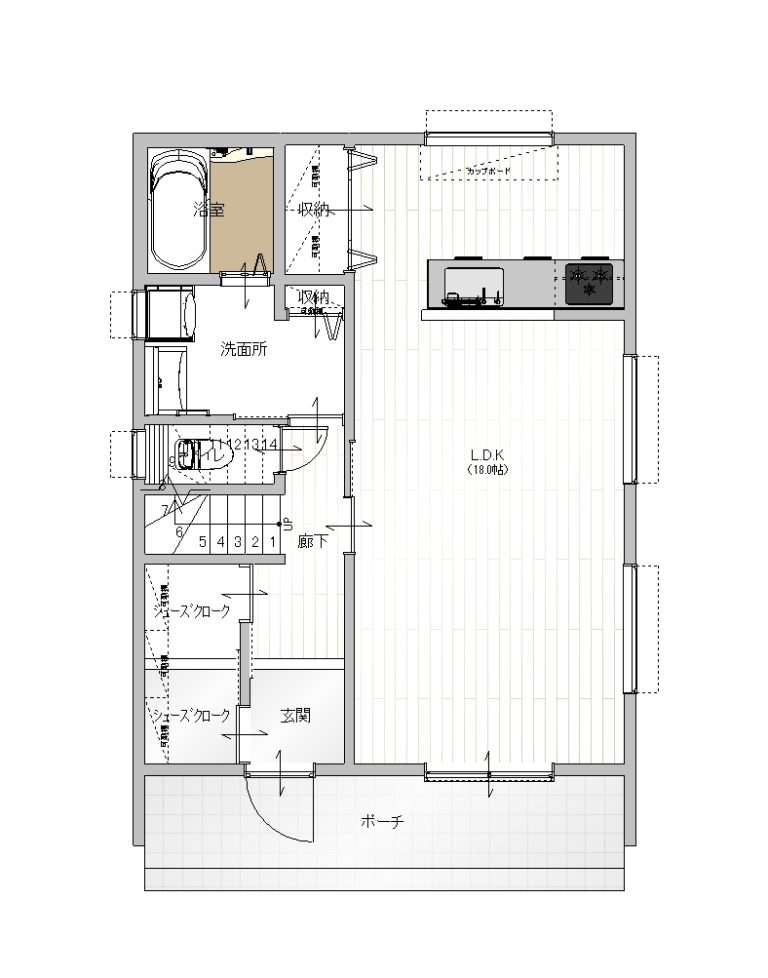 大容量のシューズクロークを備えており、靴はもちろん、ベビーカーやスポーツ用品などもすっきり収納できます。